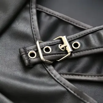 Black leather material is visually captivating, and the fitted cut highlights body curves. Cut-out designs at the chest and waist increase freedom of movement and showcase personal charm. Soft fabric ensures ultimate comfort, delivering an exceptional experience, making it an ideal choice for enhancing intimate relationships.